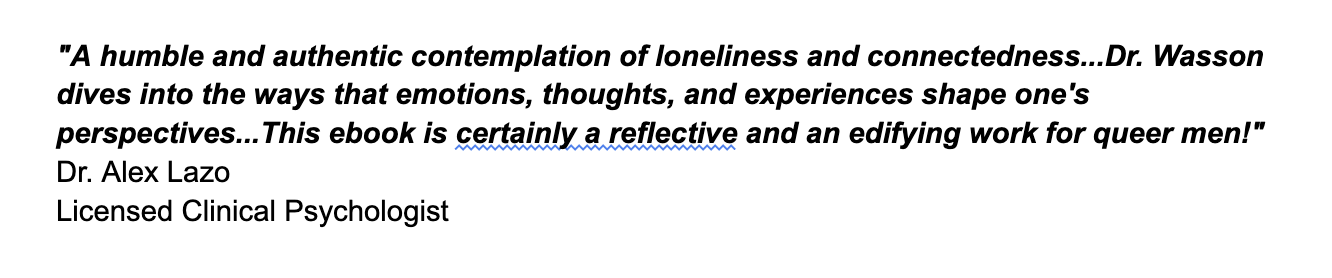"A humble and authentic contemplation of loneliness and connectedness... This ebook is certainly a reflective and an edifying work for queer men!"